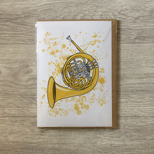 French Horn Greeting Card (Paint Splatter) - Horn Player Birthday Card - Brass Musician Card