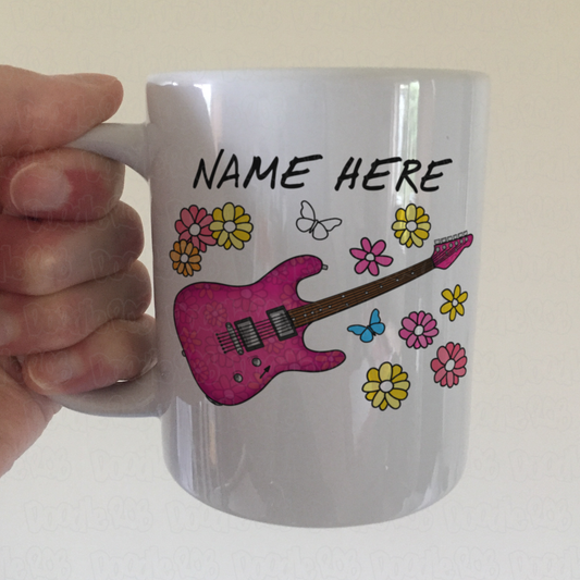 Floral Electric Guitar Personalised Mug - Custom Guitar Mug - Female Guitarist Gift