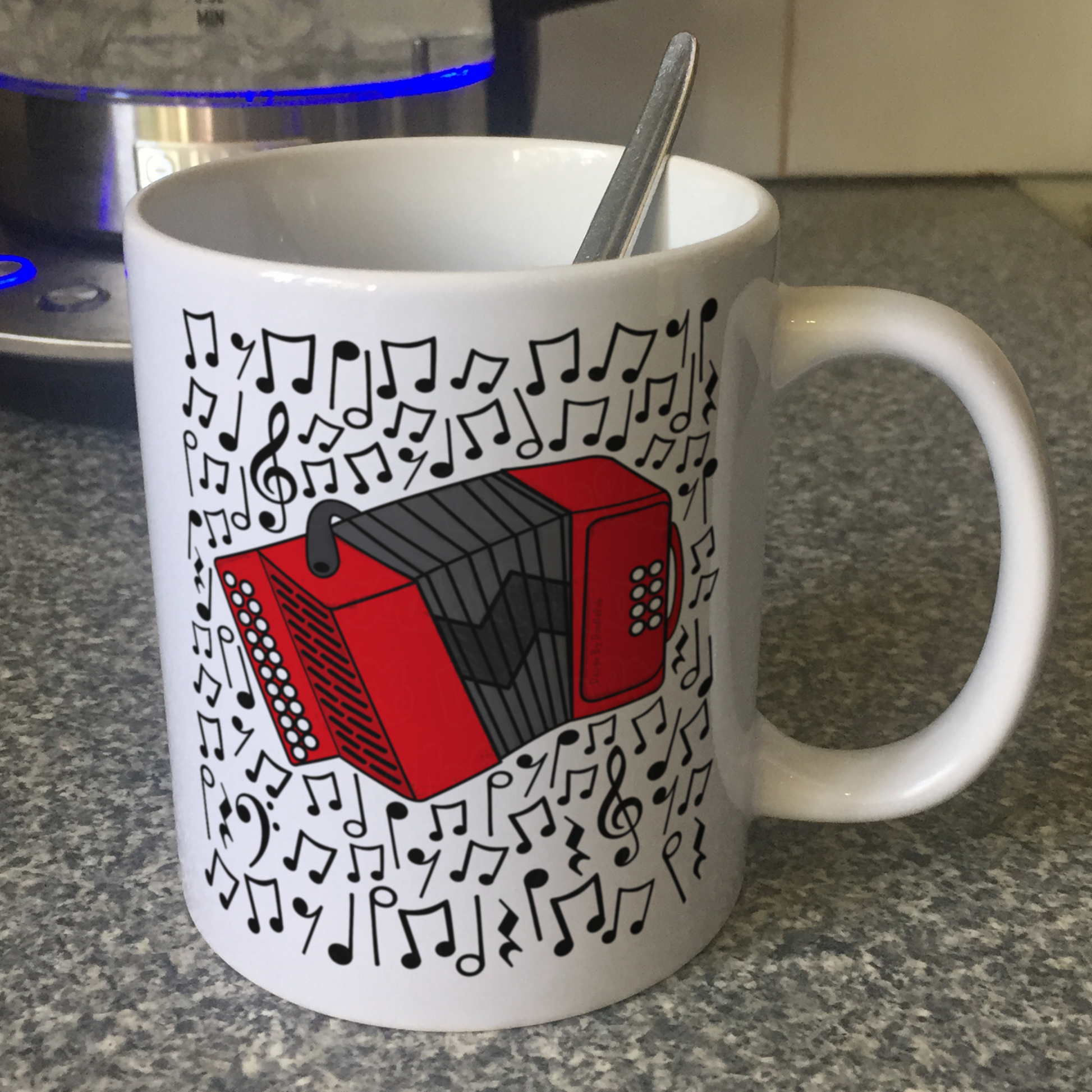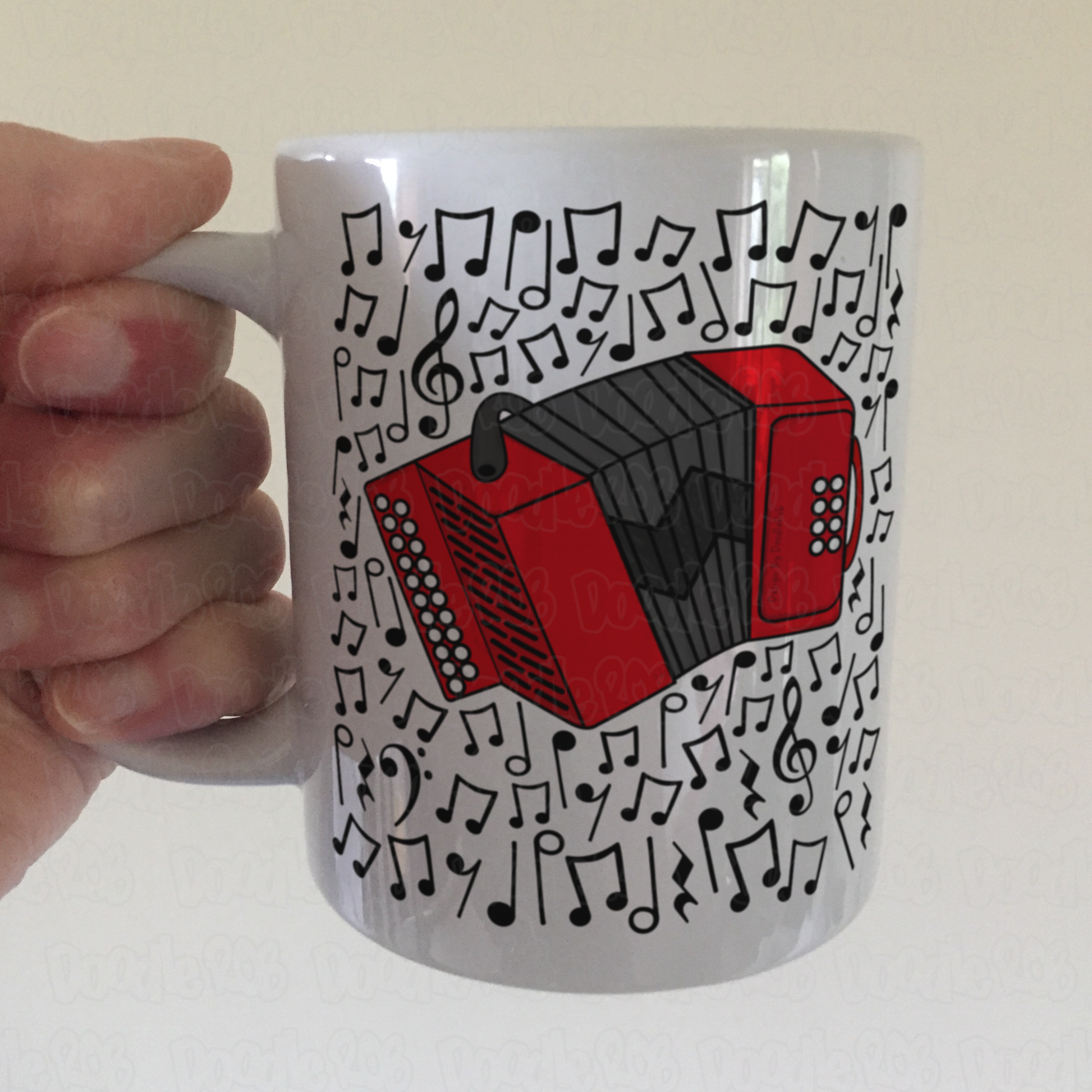 This accordion mug features my doodle of an accordion surrounded by musical notes! Ideal for accordionists, folk musicians and music lovers, this mug is the perfect gift!