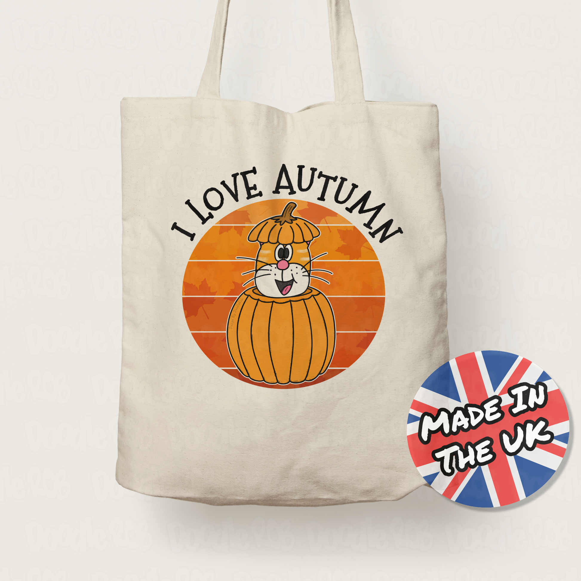 Autumn Cat Tote Bag - I Love Autumn - Cat Pumpkin - Halloween Alternative Gift