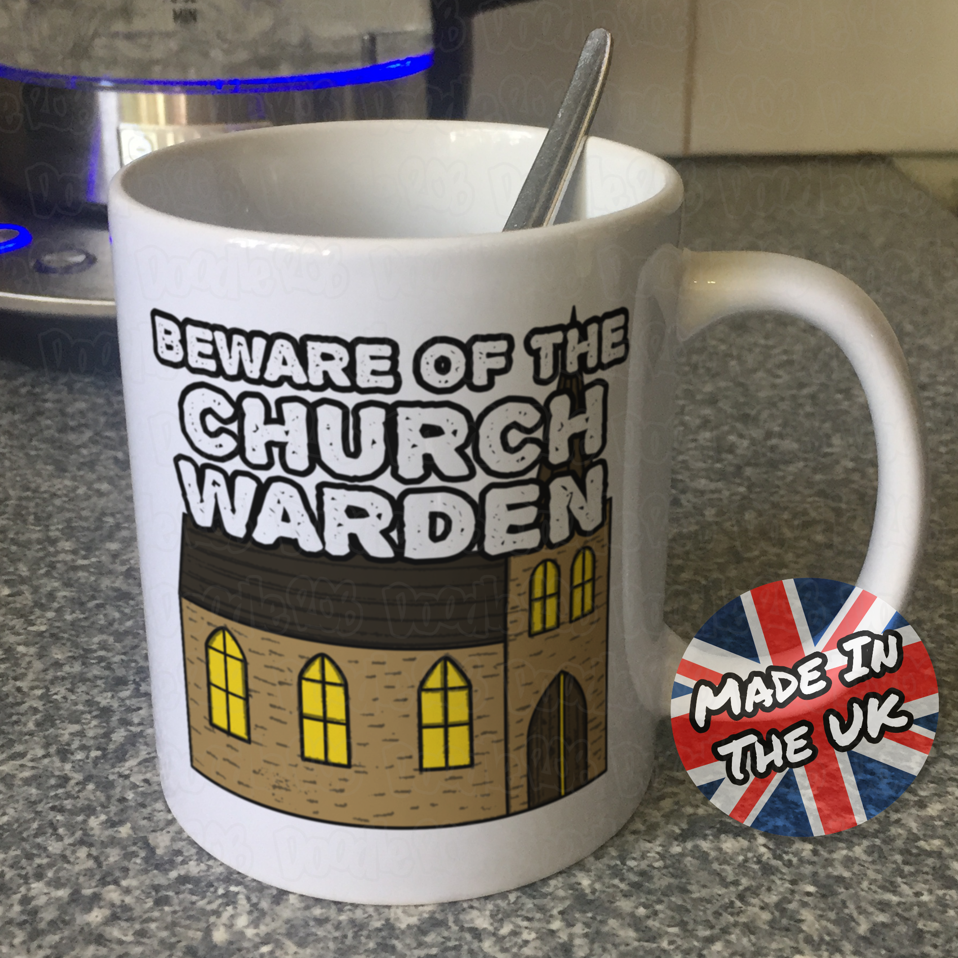 This church warden mug features my doodle of a traditional church, with the text "Beware Of The Church Warden"! Ideal for church wardens and those who serve in church, this funny church mug is the perfect gift for birthdays, church events or any other occasion!