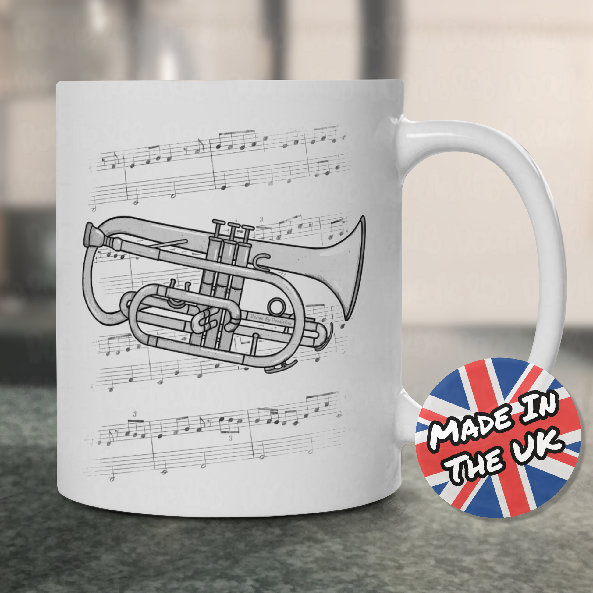 This cornet mug features my doodle of a cornet with a distressed music score background, in monochrome! Ideal for cornet players (cornetist, cornet teacher, brass student, brass player), this musician mug is the perfect gift for birthdays, teacher appreciation, music exams/performances or any other occasion!