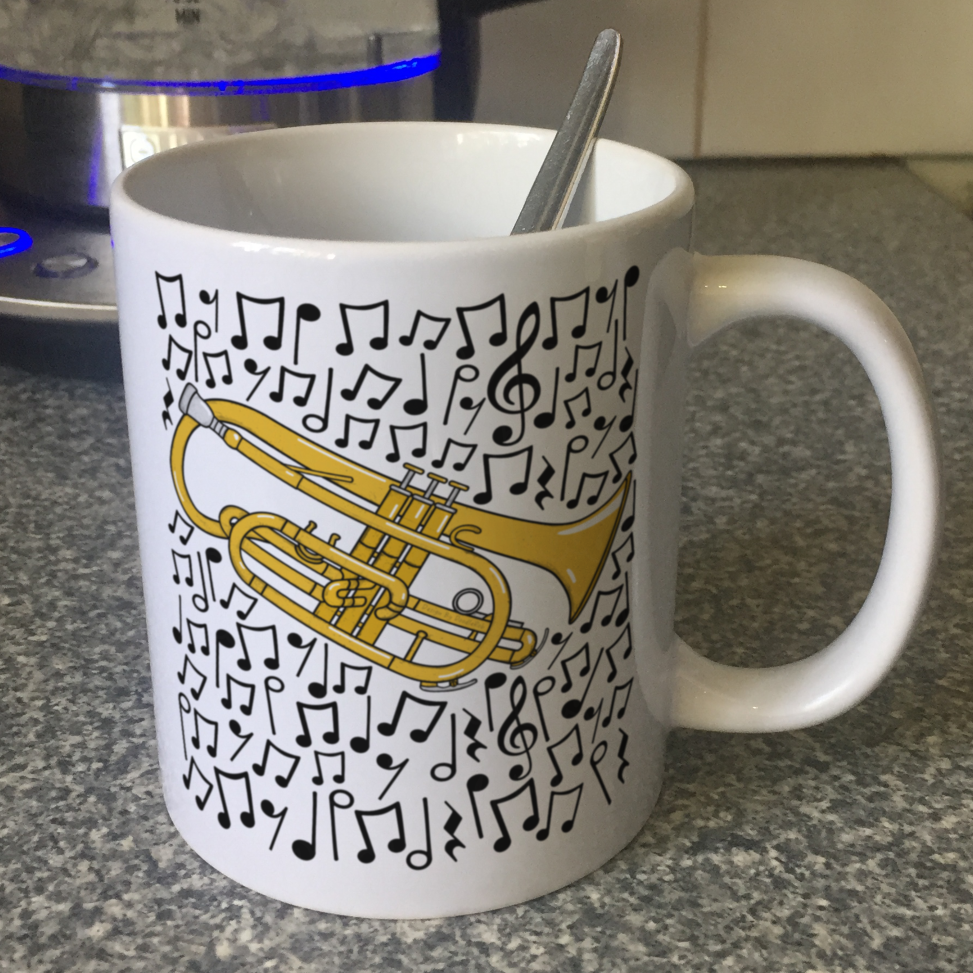 This cornet mug features my doodle of a cornet surrounded by musical notes! Ideal for cornet players (cornetist, cornet teacher, brass student, brass player), this musician mug is the perfect gift for birthdays, teacher appreciation, music exams/performances or any other occasion!