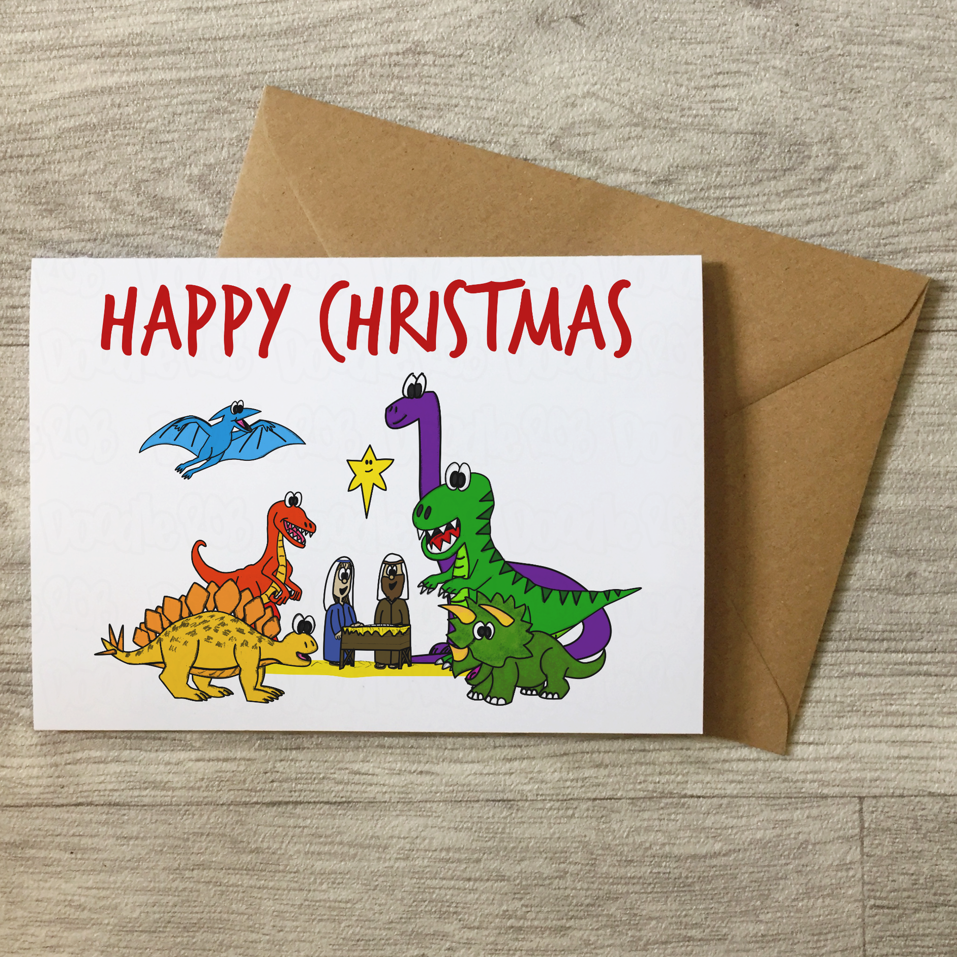 Dinosaur Christmas Nativity Card - Funny Church Xmas Card - Dinosaur Christmas Card