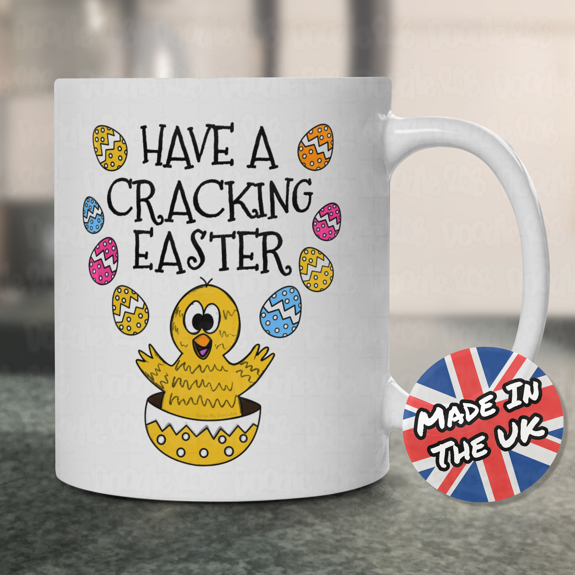 This Easter chick mug features my doodle of a chick with Easter eggs and the text "Have A Cracking Easter"! The ideal Easter gift for family and friends with a sense of humour - great for kids! Also, the perfect non-chocolate Easter gift for those who can't eat chocolate!