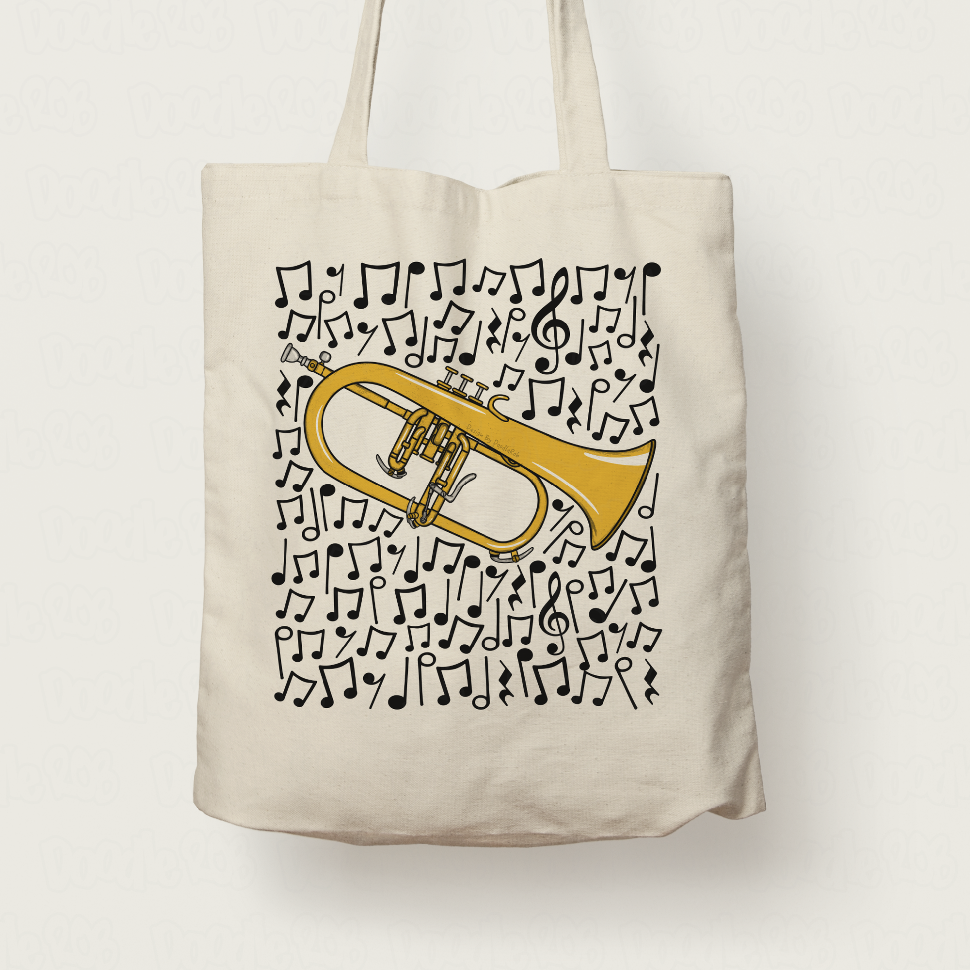 Flugelhorn Musical Notes Tote Bag - Gift For Horn Player - Brass Musician Gift