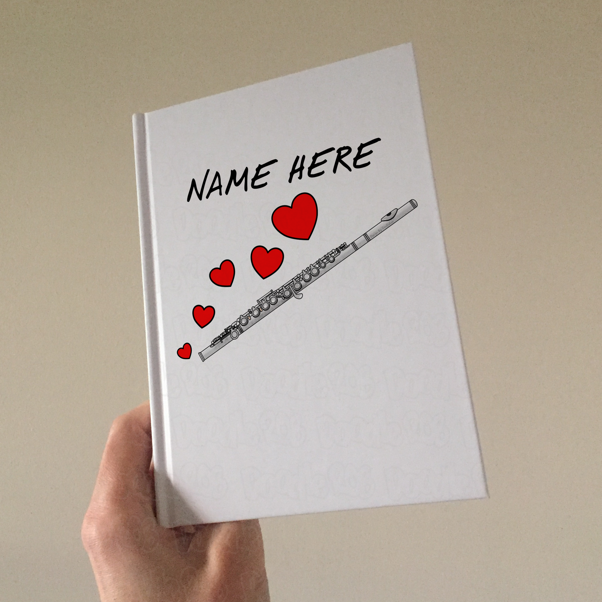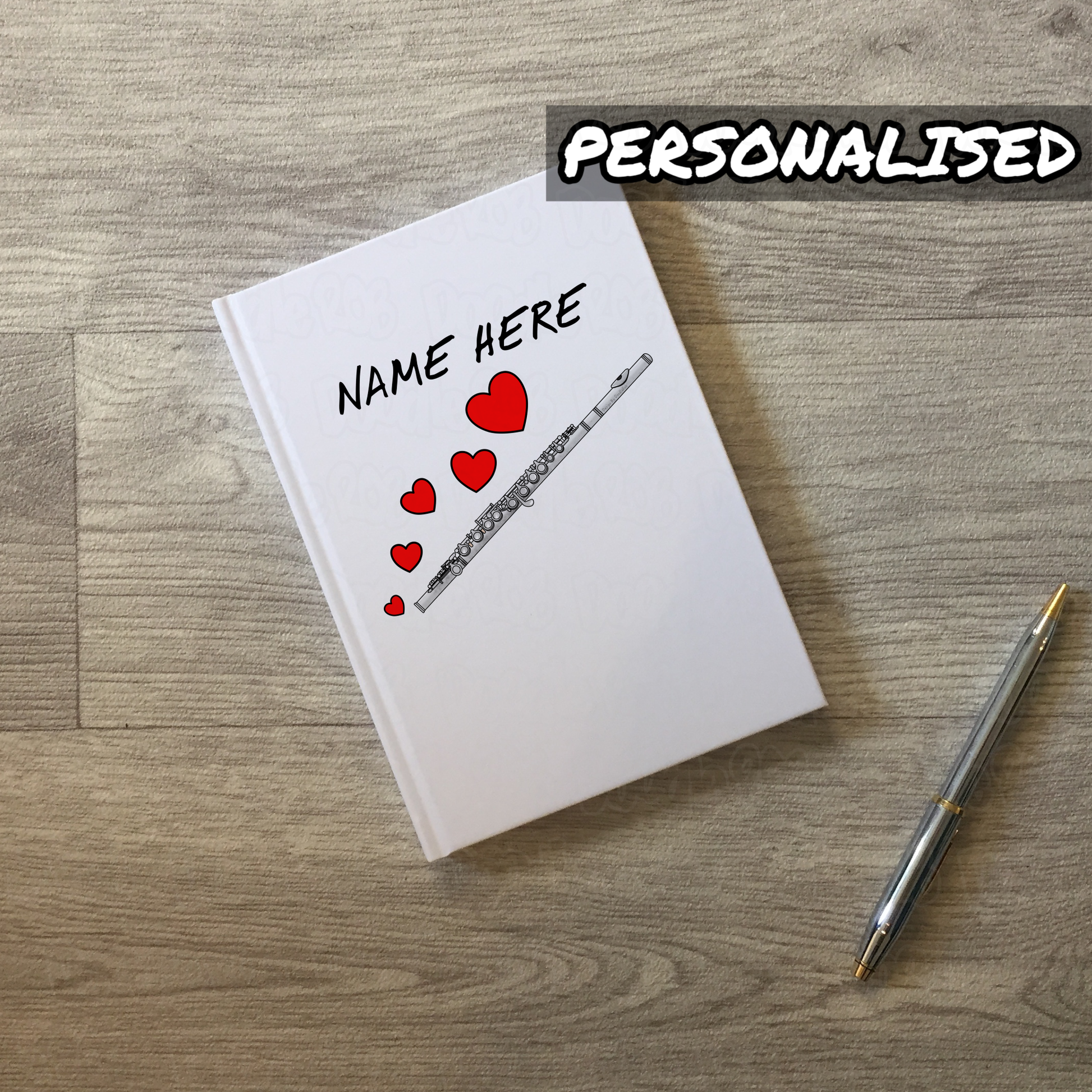 Flute Personalised Journal (Hearts) - Flautist Notebook - Musician Anniversary Gift