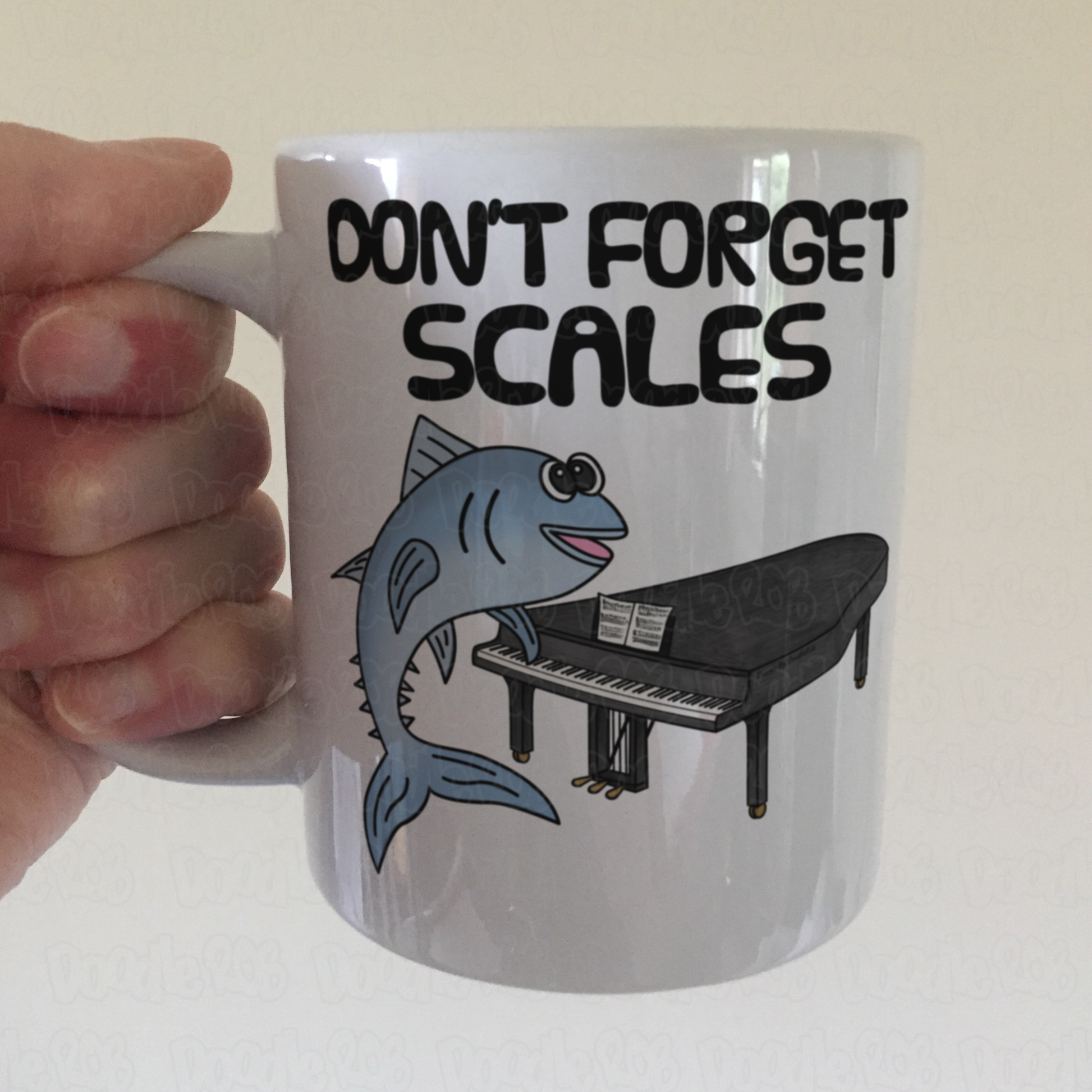 Funny Piano Mug (Tuna Fish) - Don't Forget Scales - Funny Pianist Gift - Piano Student Mug