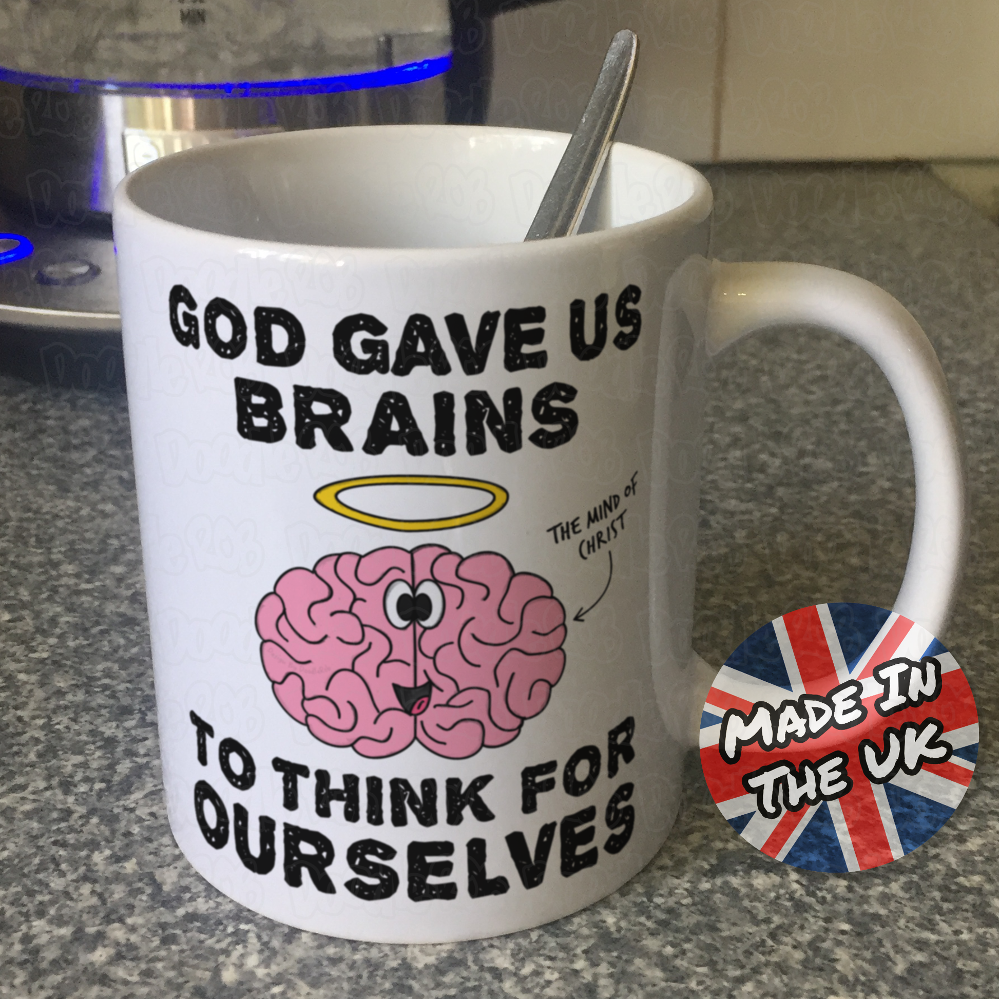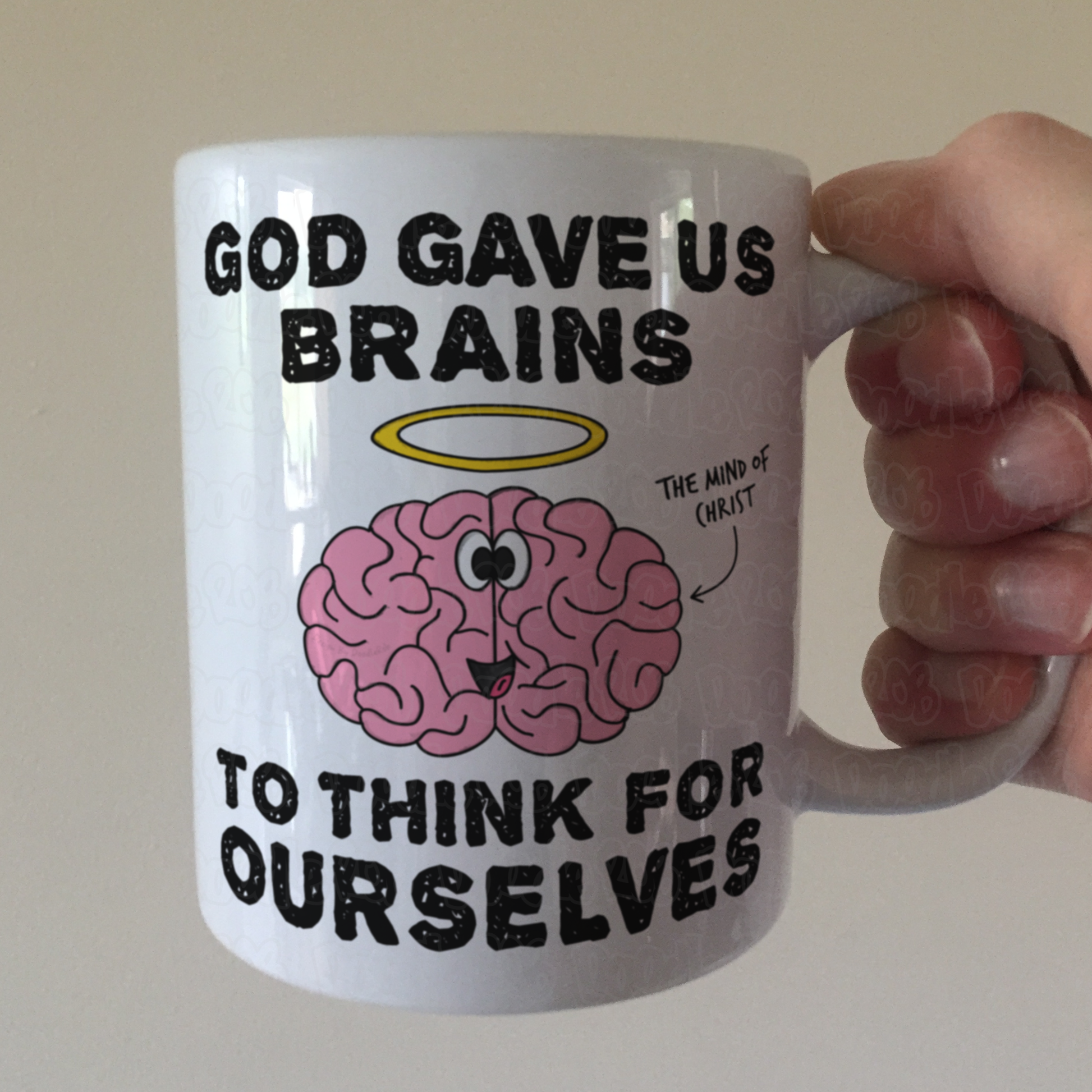 God Gave Us Brains To Think For Ourselves - Funny Christian Mug - Church Humour - Theology Student Gift