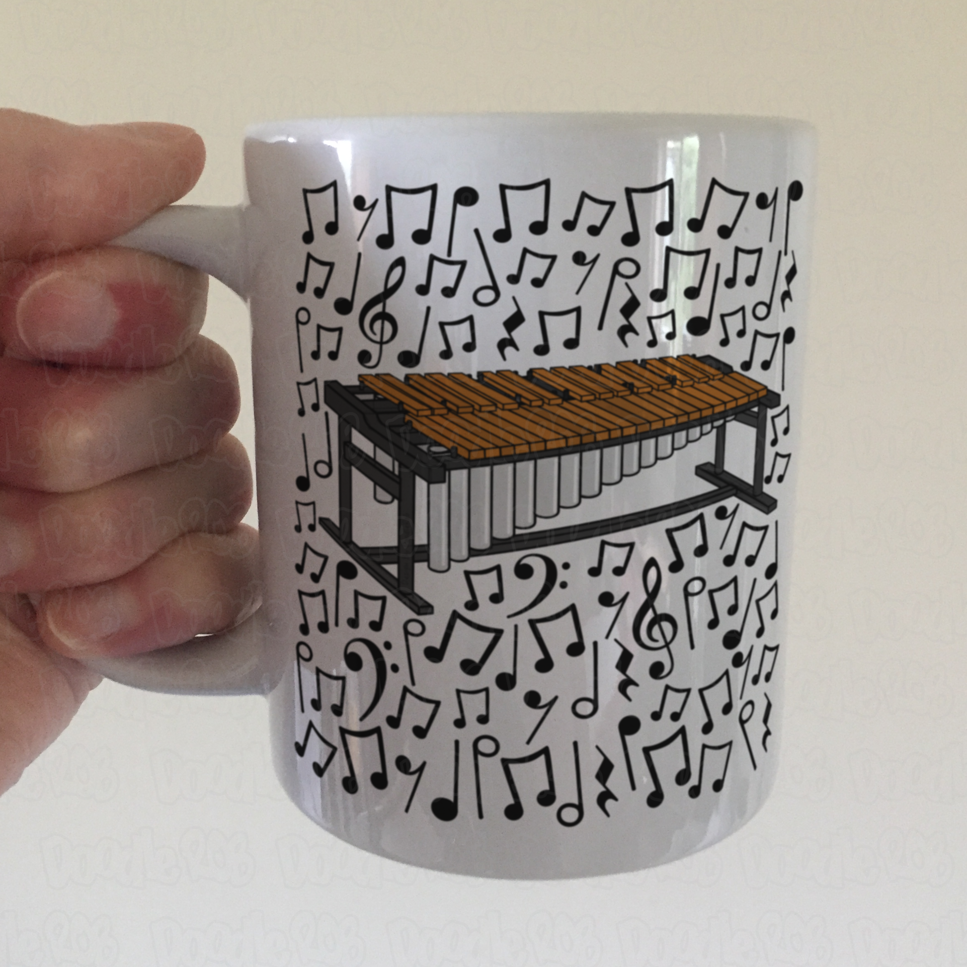 This marimba mug features my doodle of a marimba surrounded by musical notes! Ideal for marimba players(marimbist, percussionist, percussion teacher) and music lovers, this mug is the perfect gift for birthdays, teacher appreciation, music exams/performances or any other occasion!
