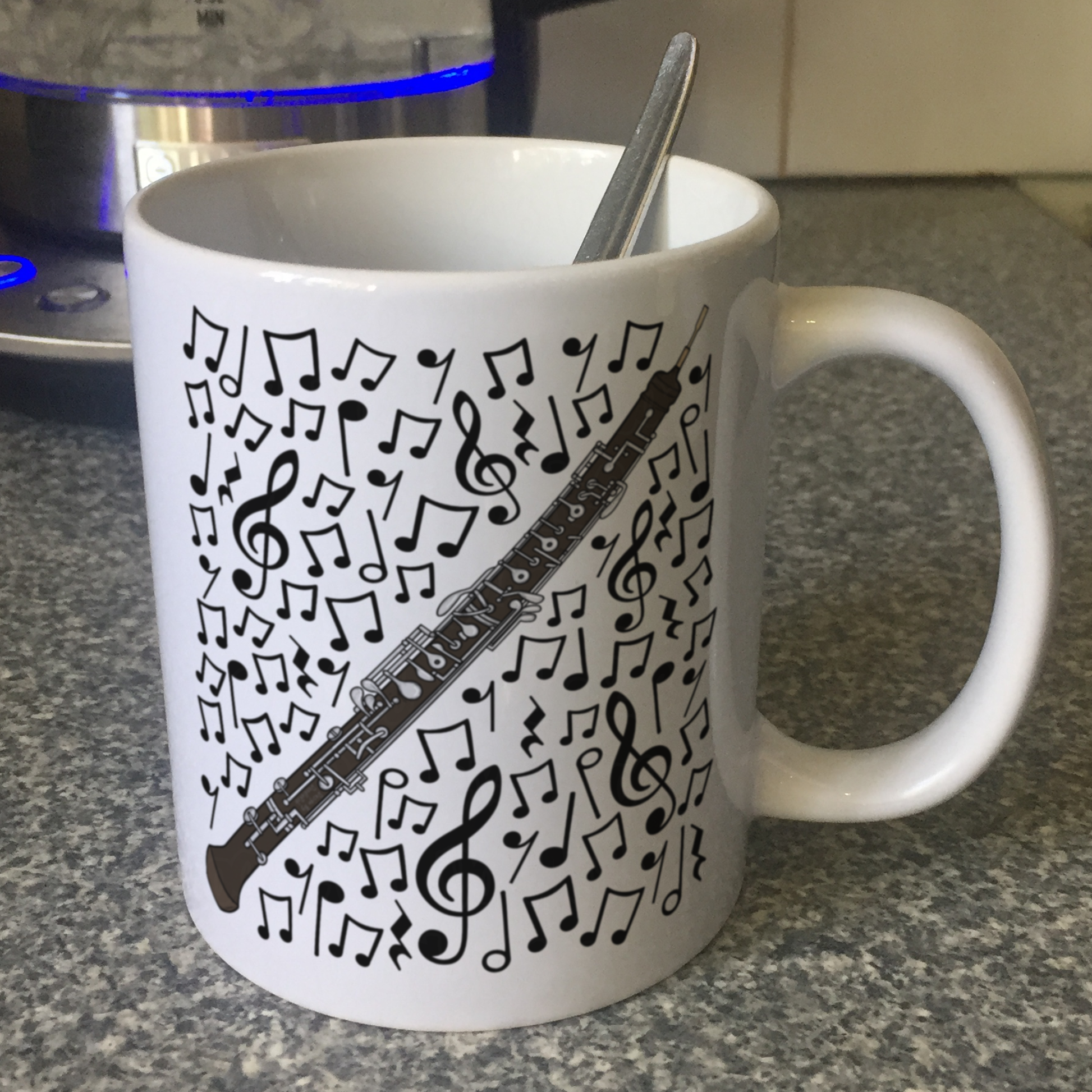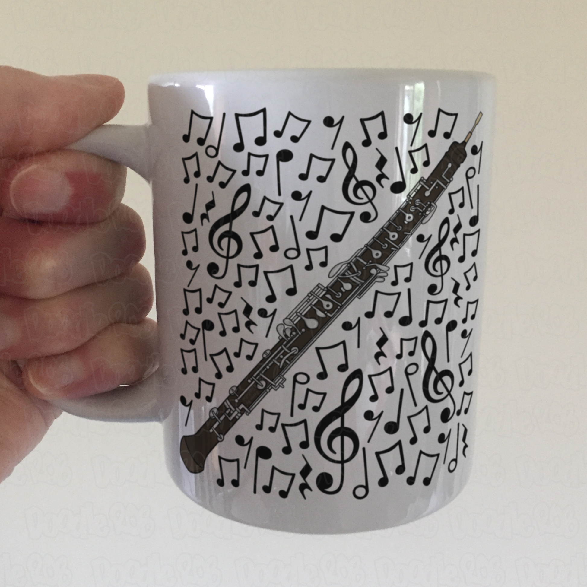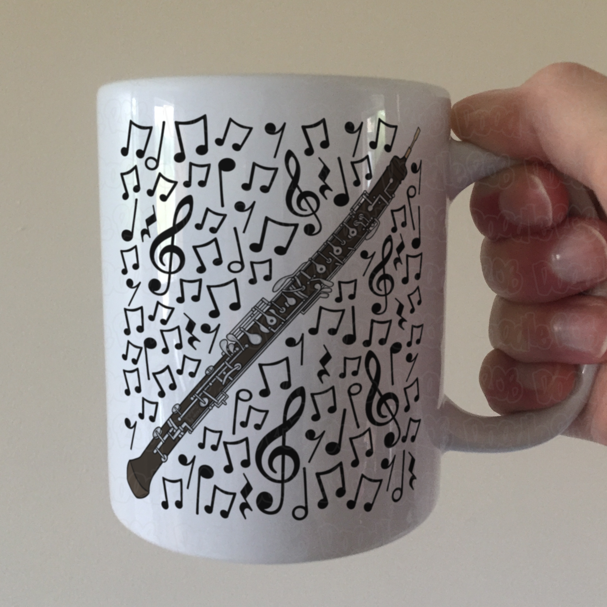 This oboe mug features my doodle of an oboe surrounded by musical notes! Ideal for oboe players (oboist, oboe teacher, woodwind teacher, woodwind musician) and music lovers, this mug is the perfect gift for birthdays, teacher thank you, music exams, or any other occasion!