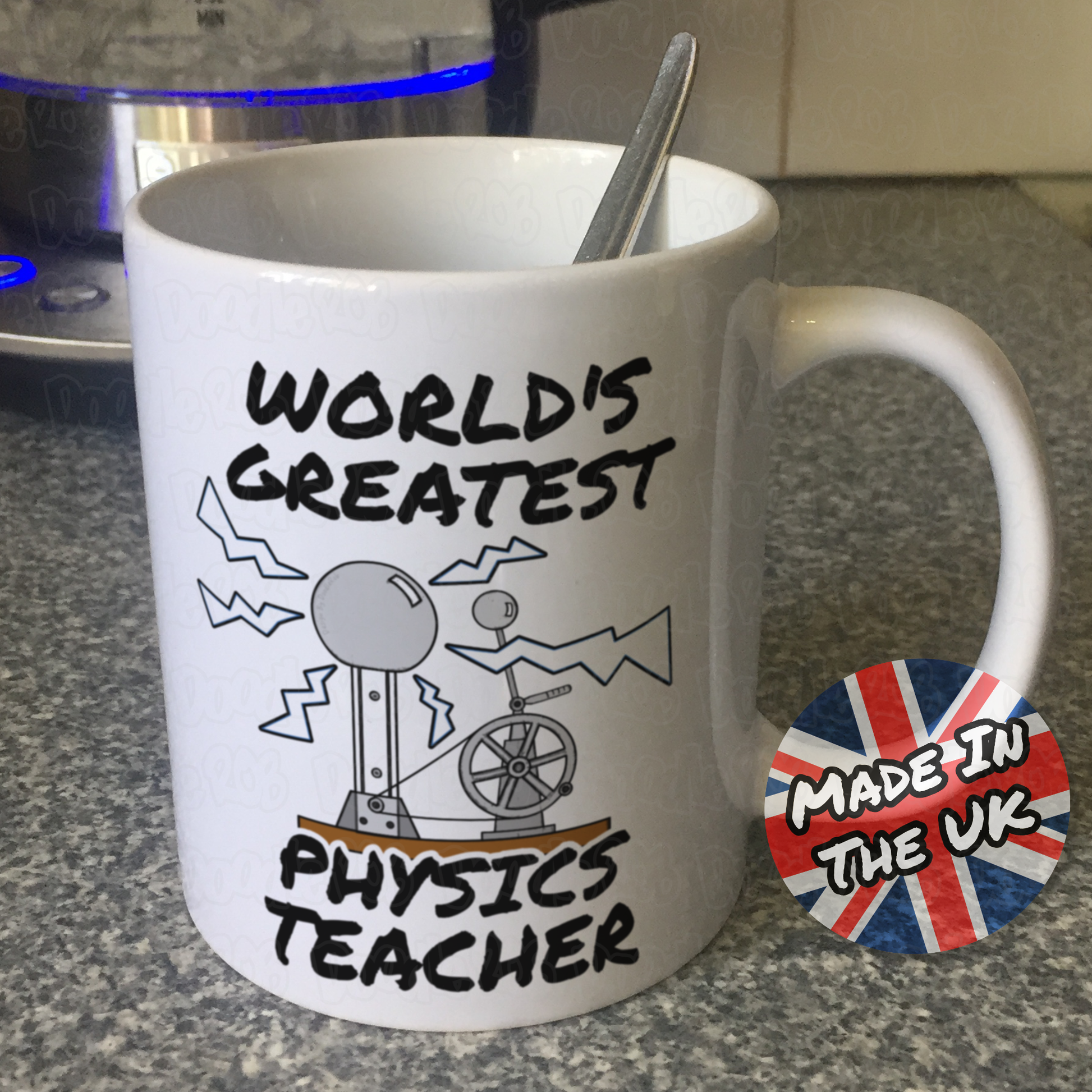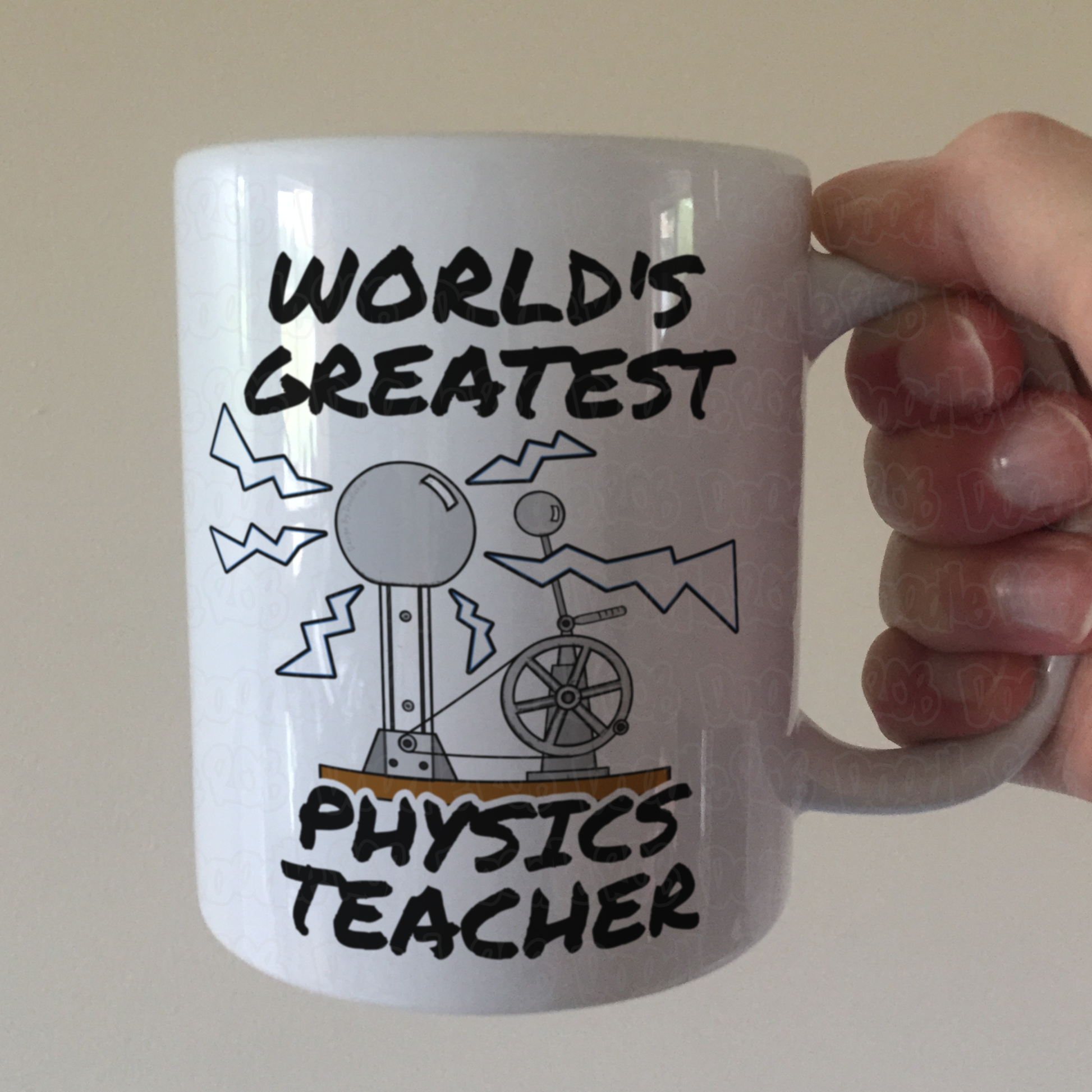 This physics teacher mug features my doodle of a Van de Graaff generator, with the text "World's Greatest Physics Teacher"! Ideal for a physics teacher with a sense of humour, this mug is the perfect back to school, birthday or teacher appreciation gift!