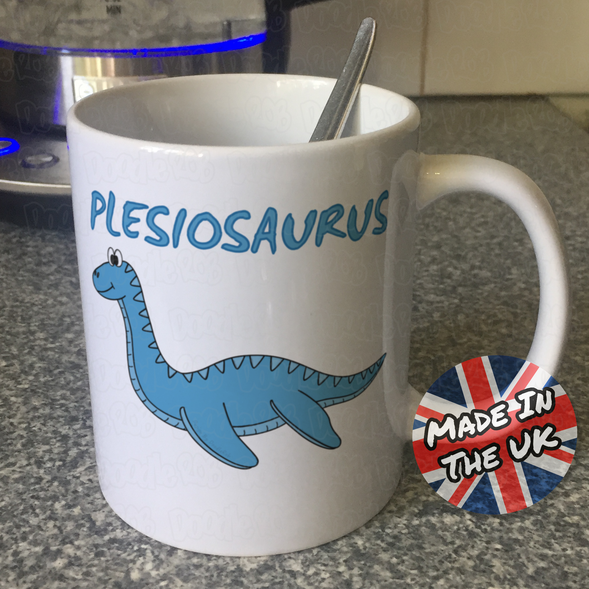 This plesiosaurus dinosaur mug features my doodle of a plesiosaurus dinosaur with the text, "Plesiosaurus"! Ideal for family and friends who love dinosaurs and the ocean, this dinosaur mug is the perfect gift for birthdays, back to school, or any other occasion!