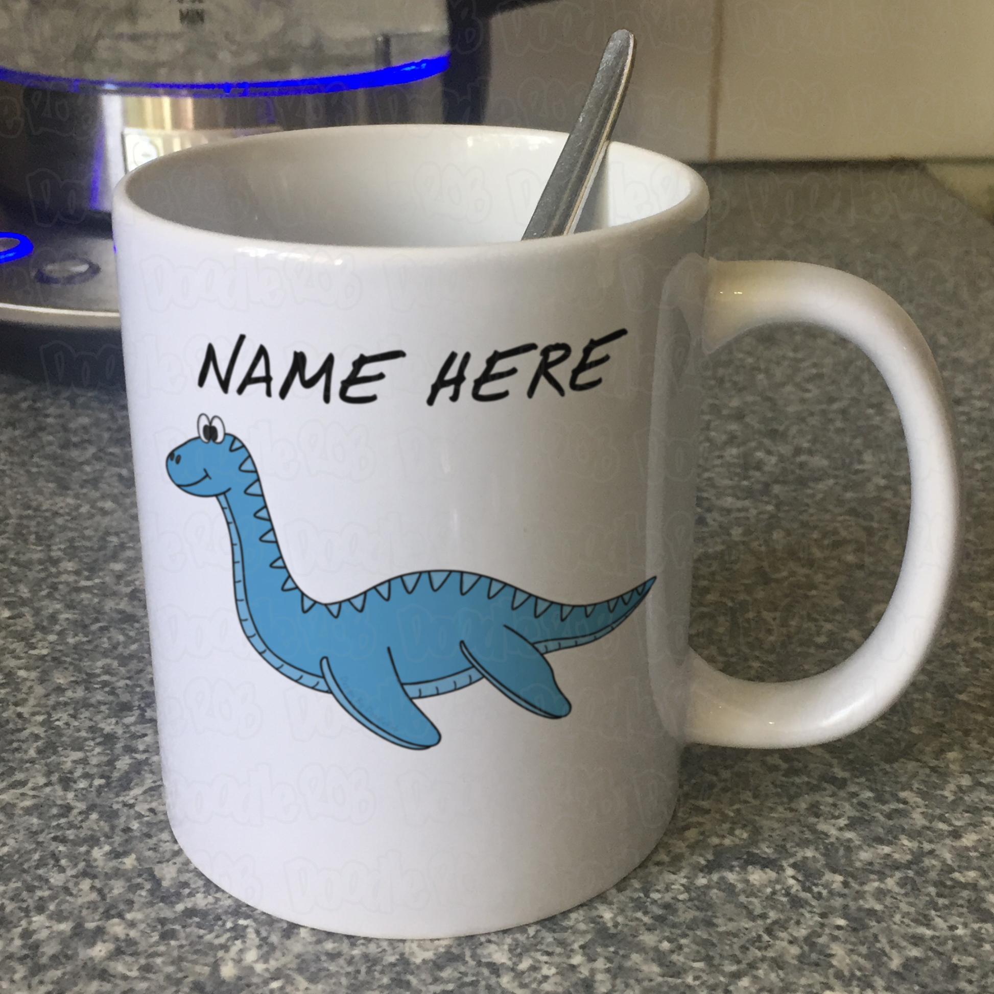 This plesiosaurus dinosaur personalised mug features my doodle of a plesiosaurus dinosaur, with custom text! Ideal for family and friends who love dinosaurs and the ocean, this custom dinosaur mug is the perfect gift for birthdays, back to school, or any other occasion!
