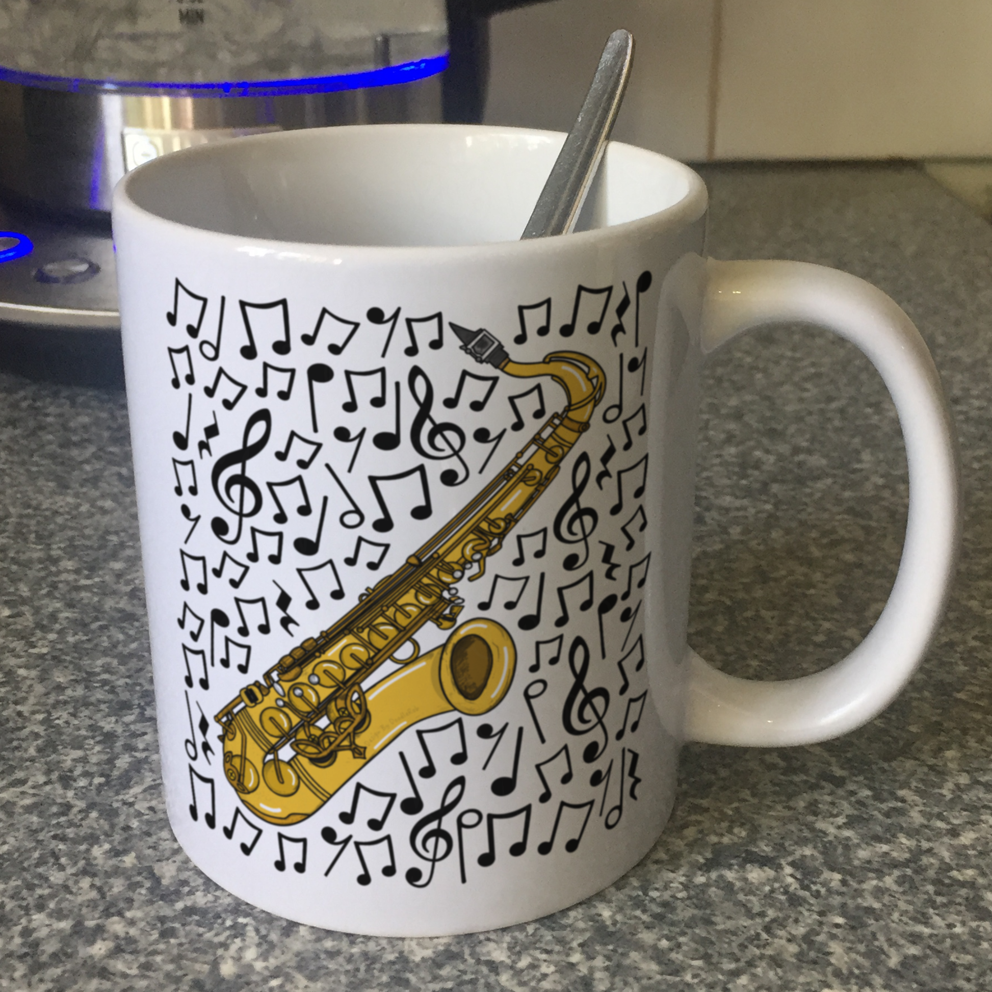 Saxophone Musical Notes Mug - Saxophonist Mug - Sax Player - Music Teacher Gift