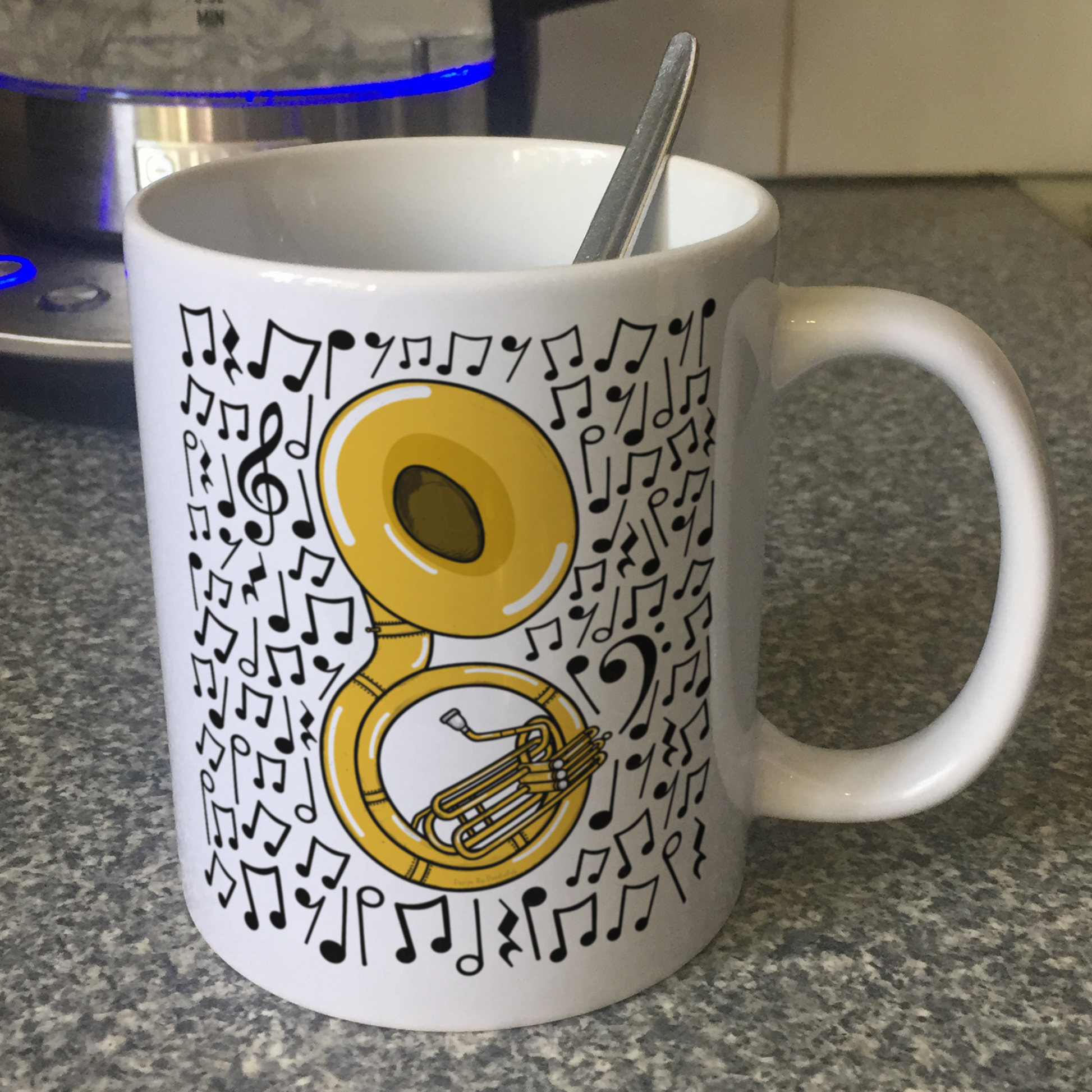 This sousaphone mug features my doodle of a sousaphone surrounded by musical notes! Ideal for sousaphone players (sousaphonist, sousaphone teacher, brass student, brass player), this musician mug is the perfect gift for birthdays, teacher appreciation, music exams/performances or any other occasion!