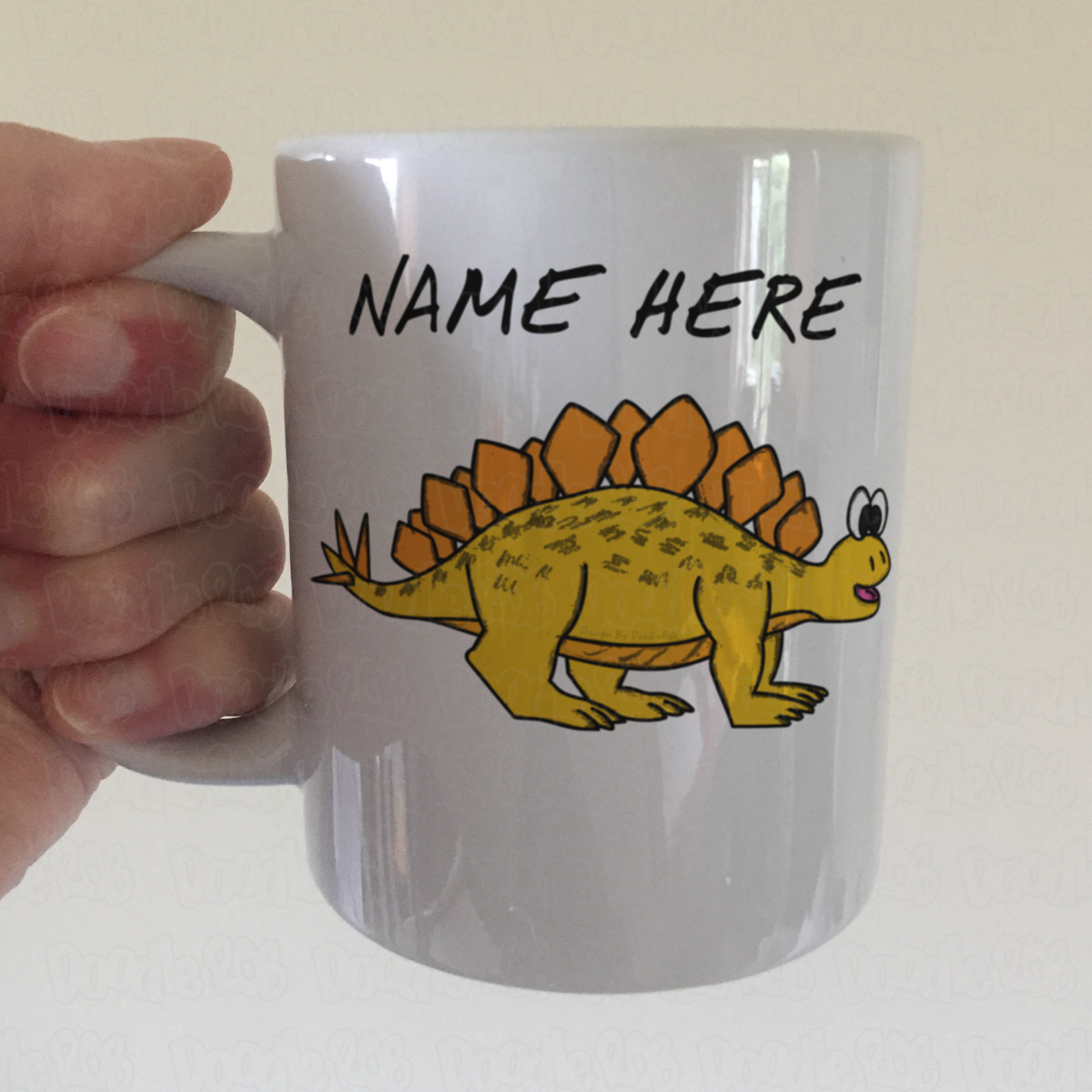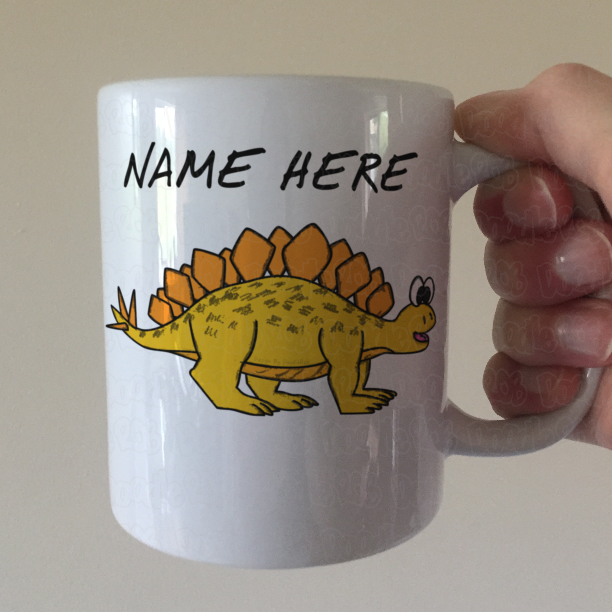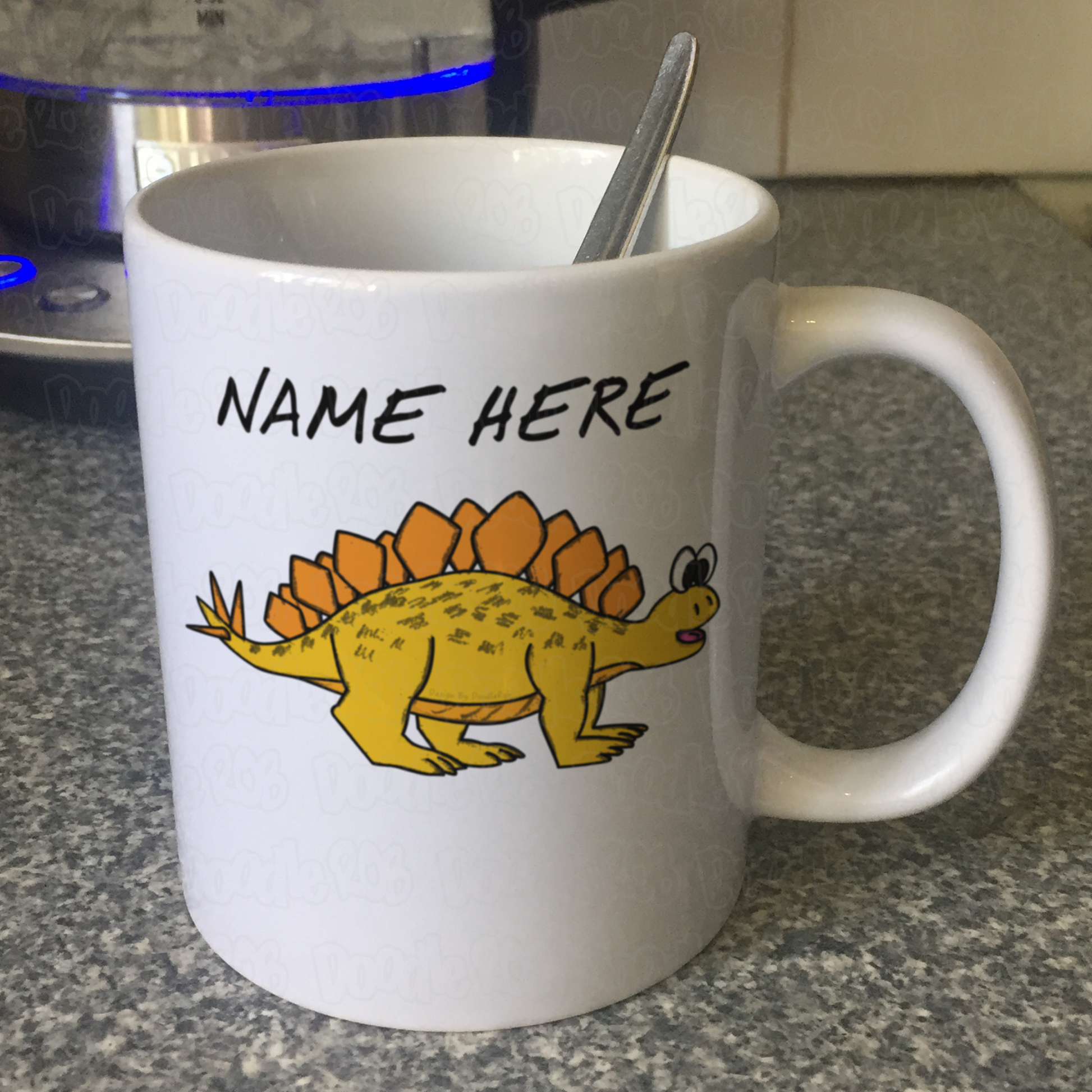 This stegosaurus dinosaur personalised mug features my doodle of a stegosaurus dinosaur, with custom text! Ideal for family and friends who love dinosaurs, this custom dinosaur mug is the perfect gift for birthdays, back to school, or any other occasion!