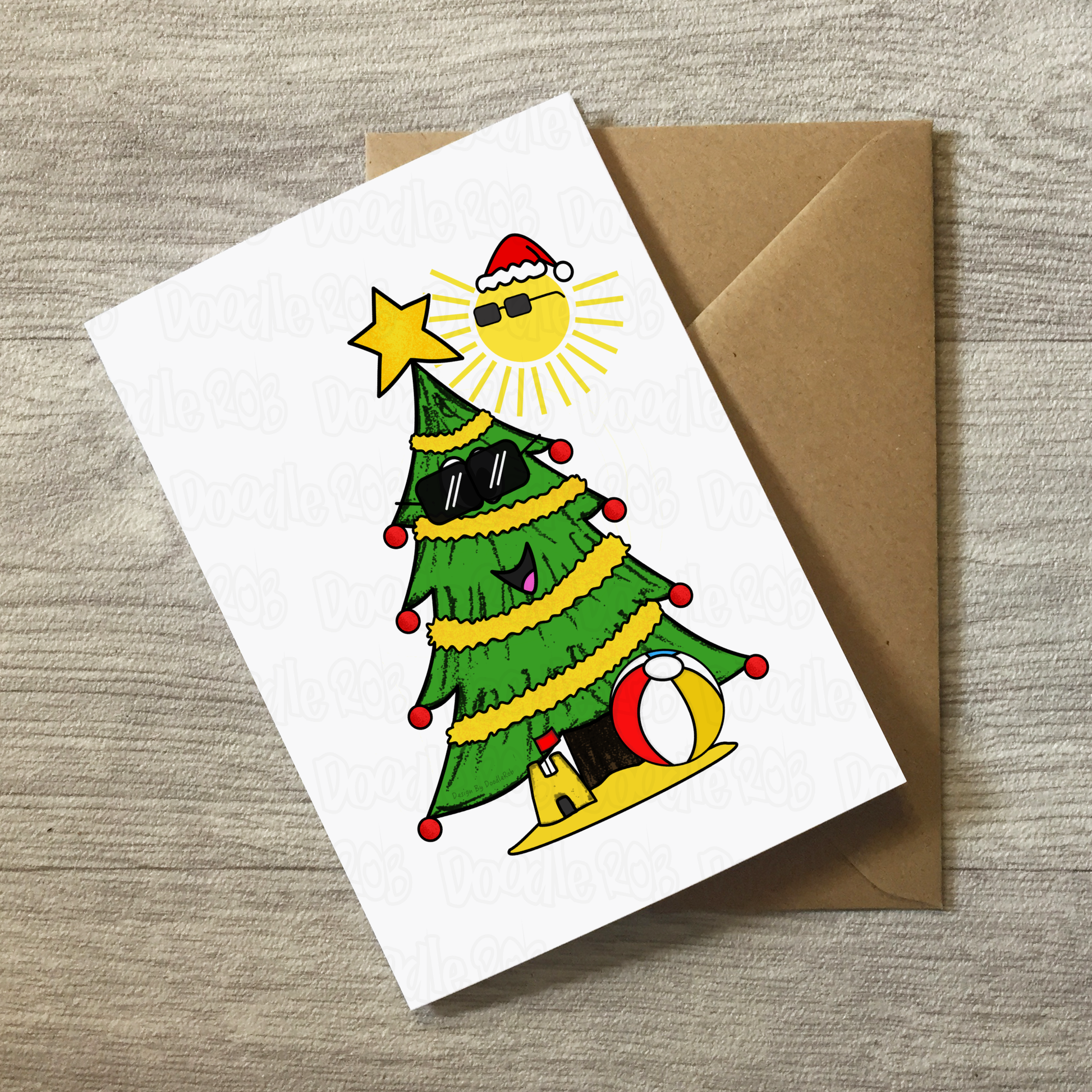 Summer Christmas Tree Card - Christmas In July Card - Beach Lover Xmas Card