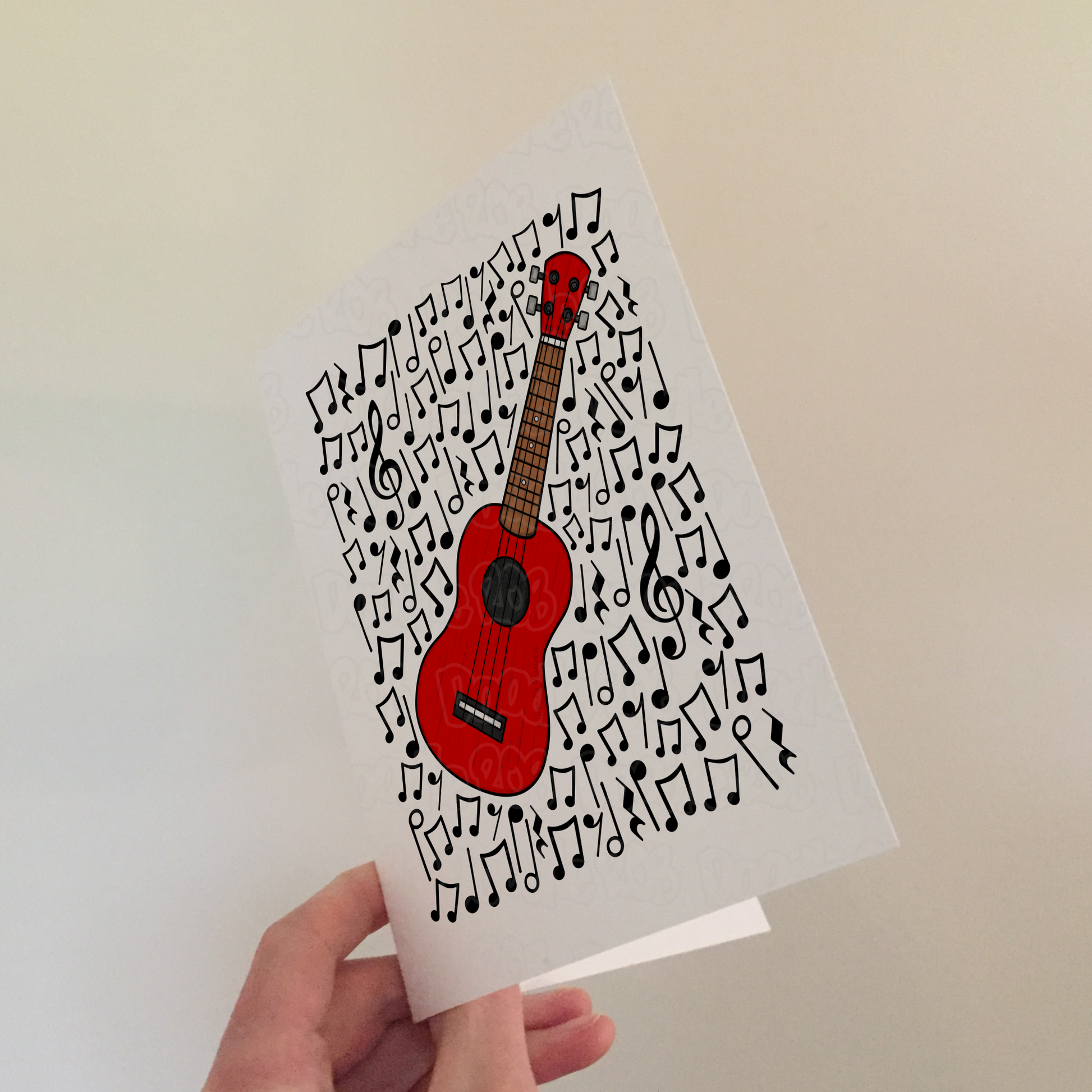 This ukulele greeting card features my doodle of a ukulele, surrounded by musical notes! The ideal card for ukulele players (ukulelist, uke player, ukulele teacher) and music lovers!